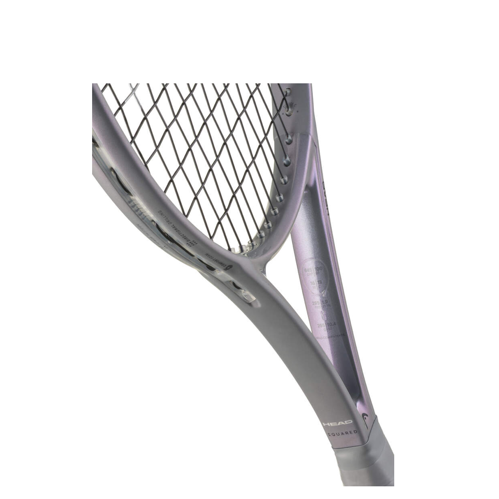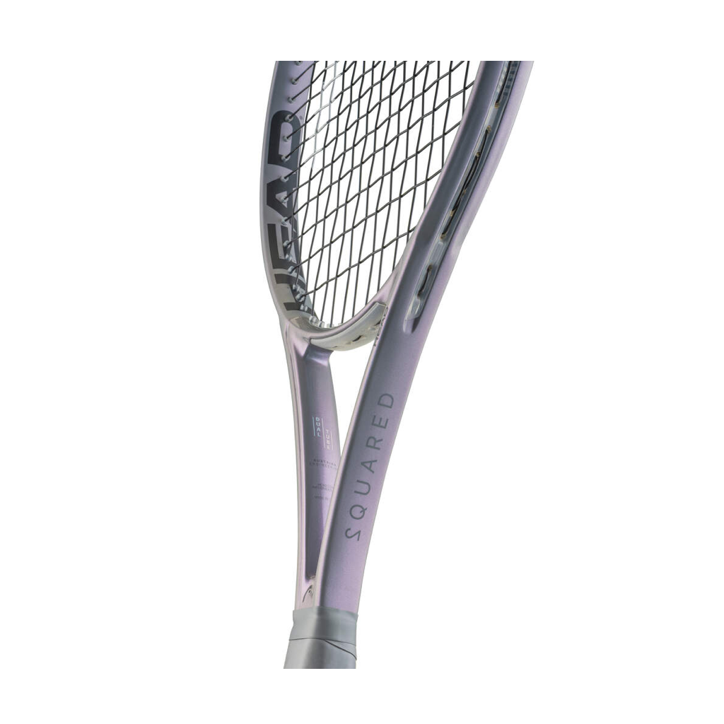 Introducing the all new Head Squared! The most head-light racquet HEAD has ever produced, the racquet offers maximum maneuverability with a superior feel. Thanks to a low swing-weight and with enough power and comfort with its cutting edge dual tube tech, the racquet allows you to swing big and fast while maintaining control on the ball. The outer tube is made with T800S carbon fiber to provide power and the inside tube is foam filled to maximize comfort and arm friendliness. The 16X18 string pattern with directional drilling for the grommets provides a crisp string bed response with enhanced spin on the shots. The racquet comes in a modern, fashionable gray with a hologram effect that makes the gray more sophisticated and flips from magenta to teal.